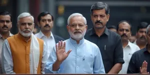 «3D cartoon old Indian grandfather standing sadly near a banana t...»