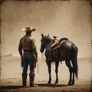 «A cinematic, vintage western-style charcoal and oil painting. A...»