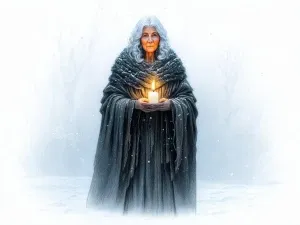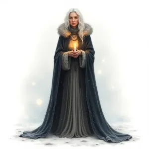 «Winter Solstice Sage standing in a snowy landscape, full-body ch...»