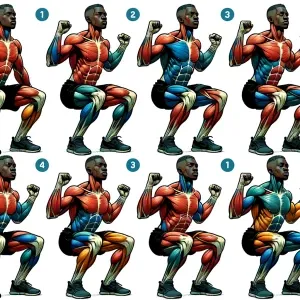 «create a stop motion drawing of a person doing a squat highlight...»