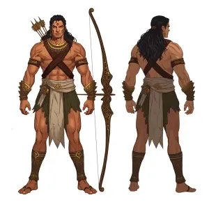 «Arjuna — A tall, athletic Indian warrior in stylized painterly f...»