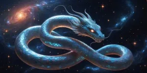 «In the depths of a starry void, a celestial serpent slowly twist...»