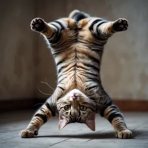 «A cat where it's doing a handstand and inside out»