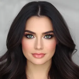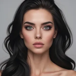 «The person in the image is a woman with fair skin and a symmetri...»