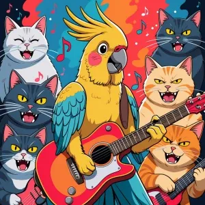 «In an anime style, visualize a joyful and playful cockatiel parr...»