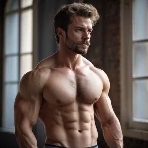 «A confident man with a well-groomed, muscular body, proudly disp...»