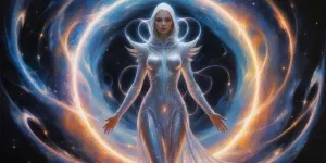 «In a celestial whirl of vibrant lights and ethereal shadows, a c...»