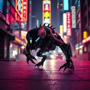 «In the shadows of a neon-lit cityscape, a retro-futuristic illus...»