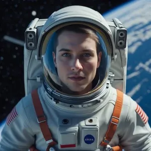 «put a face inside a hyper-realistic astronaut suit with a floati...»