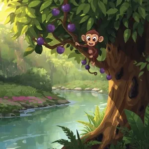 «cute cartoon monkey and crocodile, small brown monkey with big r...»