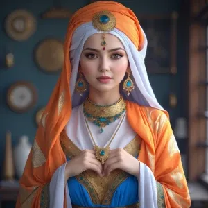 «A royal palace at sunset, two beautiful princesses standing on t...»