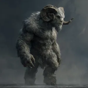 «A mighty creature looms before you, its sinewy frame cloaked in...»