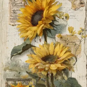 «Sunflower junk journal page, vintage botanical collage, large go...»