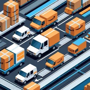 «Amazon-themed business illustration showing delivery boxes, ware...»
