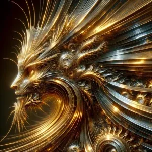 «A glistening, shimmering gilded wild digital avatar, its metalli...»