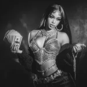 «Make a bold professional style album cover art for female rapper...»