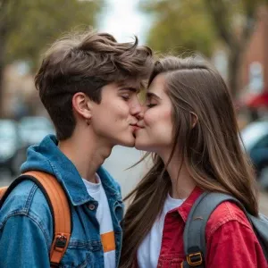 «Teenager couple kissing»