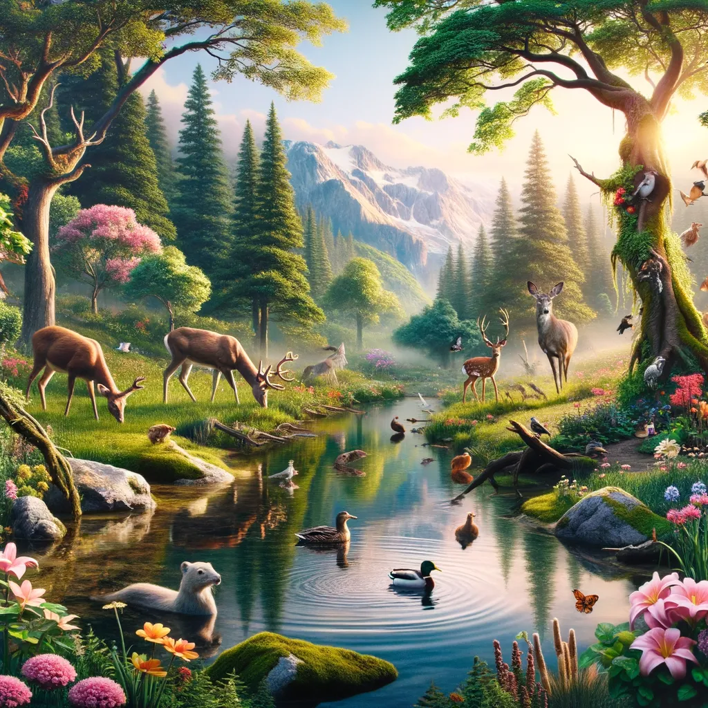 Create images of forests, mountains, rivers, or wildlife, focusing on the intricate details of natural environments and animal life