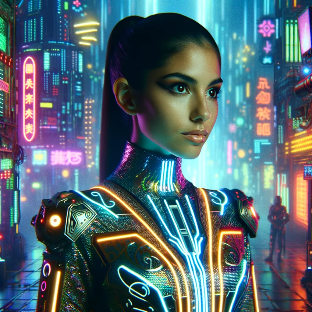 This style combines futuristic technology with a gritty, dystopian atmosphere, reminiscent of cyberpunk video games