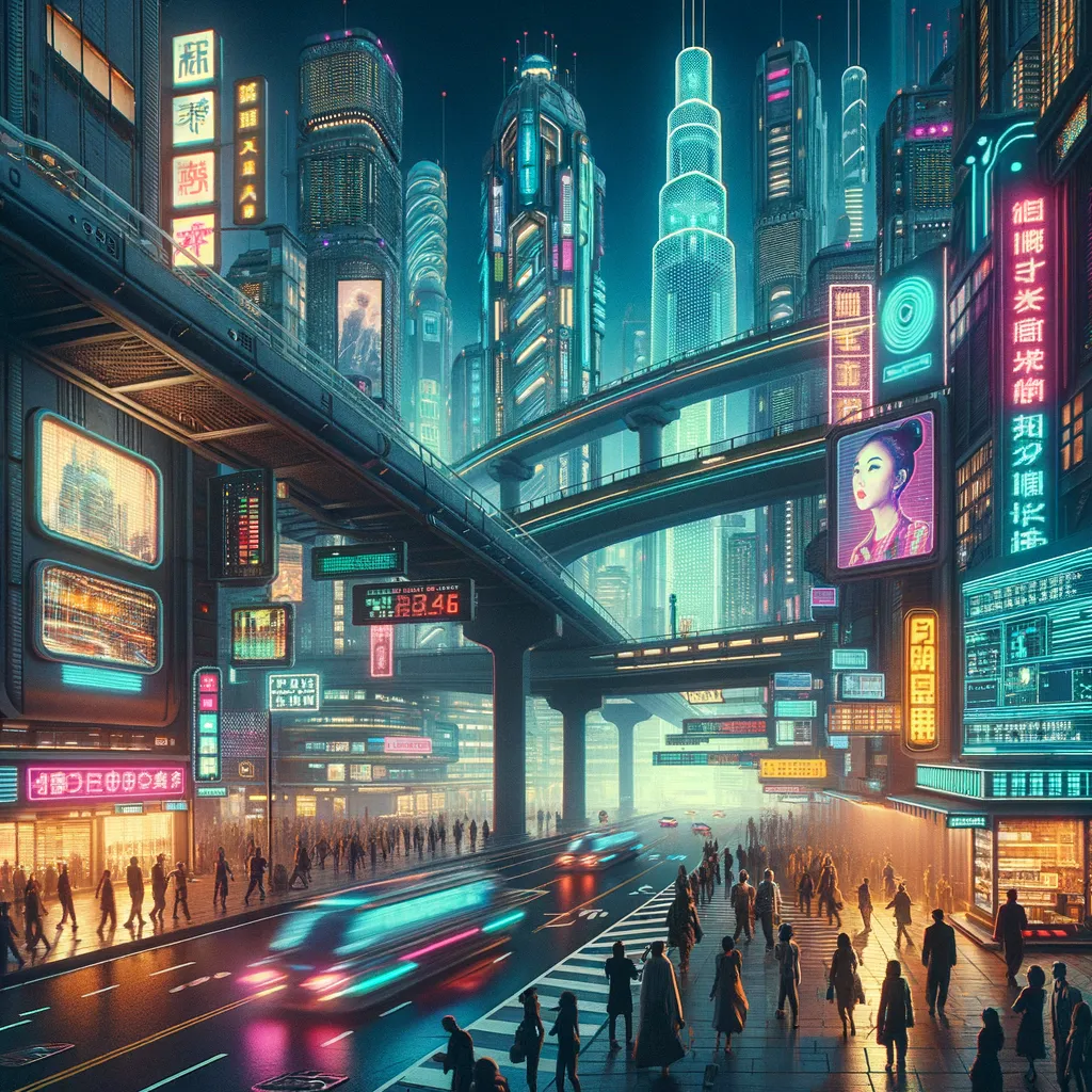 This style combines futuristic technology with a gritty, dystopian atmosphere, reminiscent of cyberpunk video games
