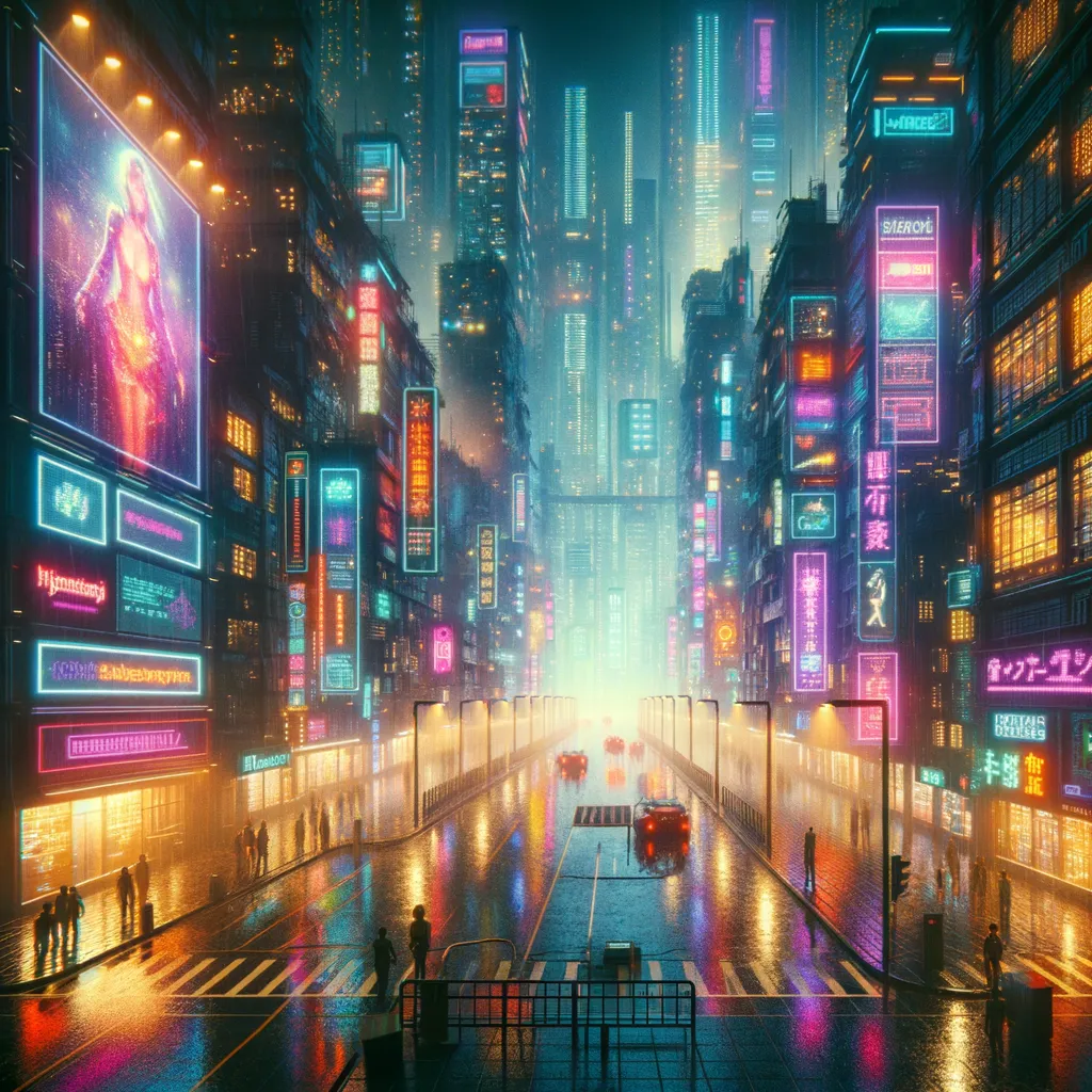 This style combines futuristic technology with a gritty, dystopian atmosphere, reminiscent of cyberpunk video games