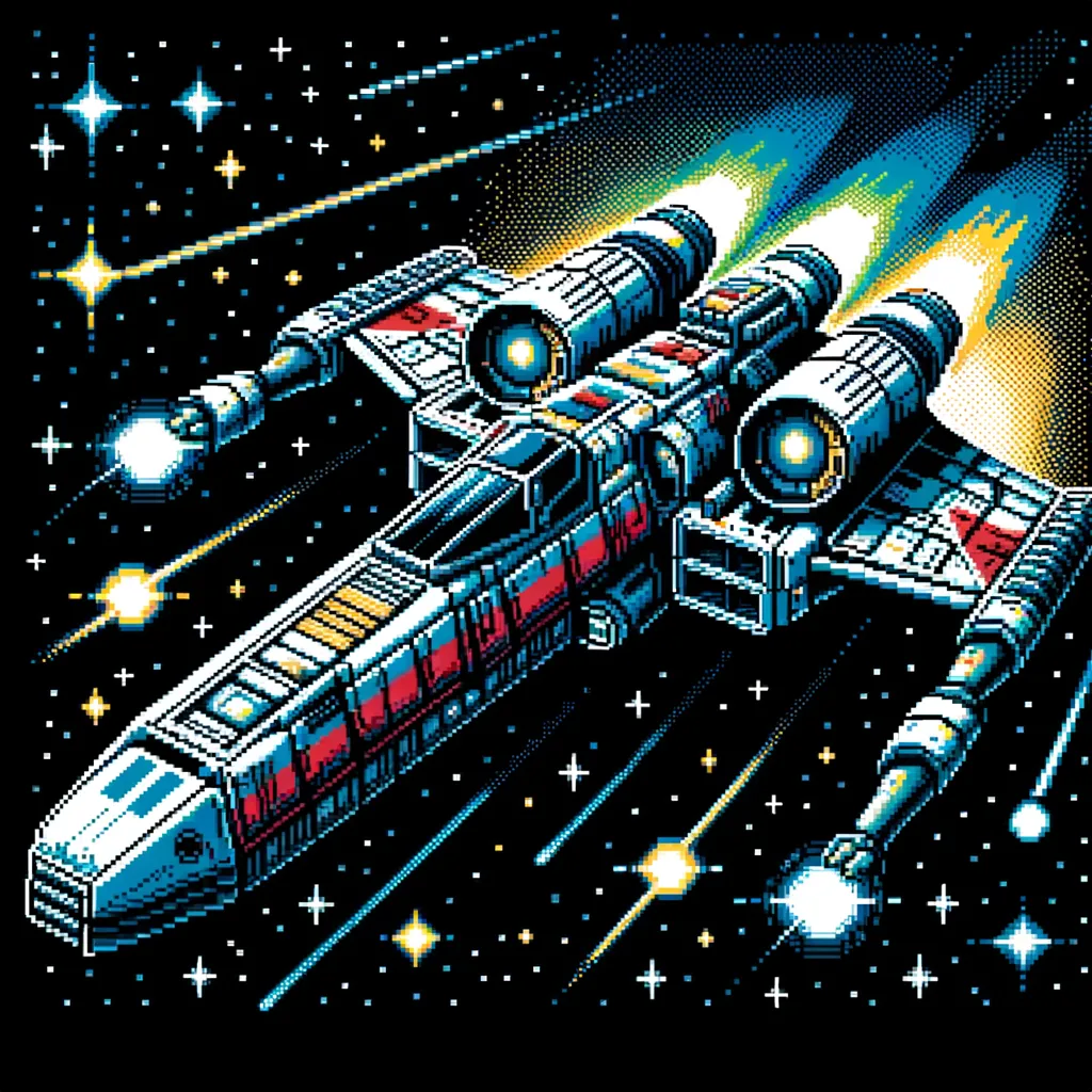 Pixelated graphics and 8-bit art style, evoking the nostalgia of classic arcade games. This style is perfect for creating images that pay homage to the early days of video gaming