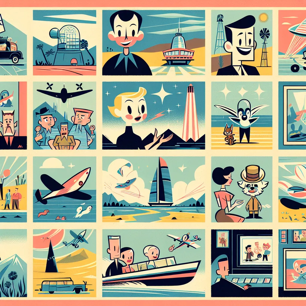 Inspired by the mid-20th century animations, this style features simple yet stylized characters and backgrounds, often reminiscent of the 1950s and 60s cartoons.