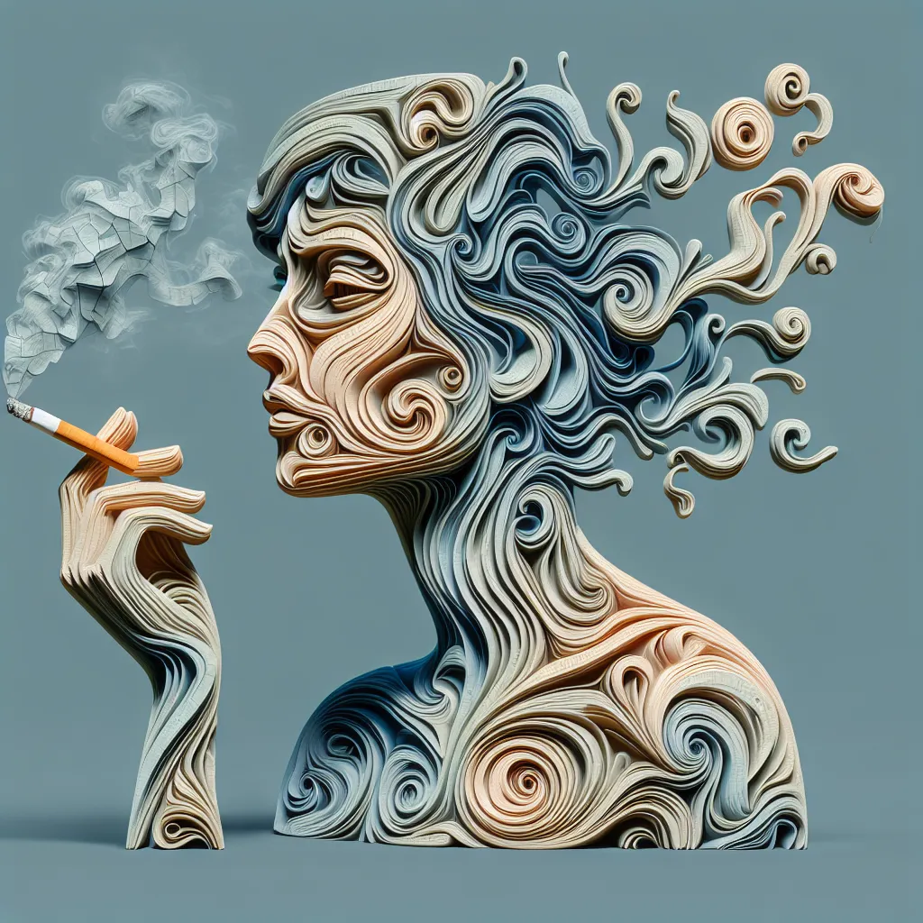 A crackled acrylic paint portrait of a lady smoking a cigarette, in the style of the smoke