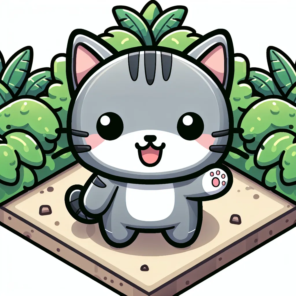 стикер. милый котенок серого цвета с темными полосами улыбается и приветственно машет