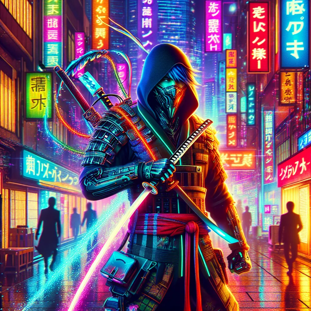 This style combines futuristic technology with a gritty, dystopian atmosphere, reminiscent of cyberpunk video games