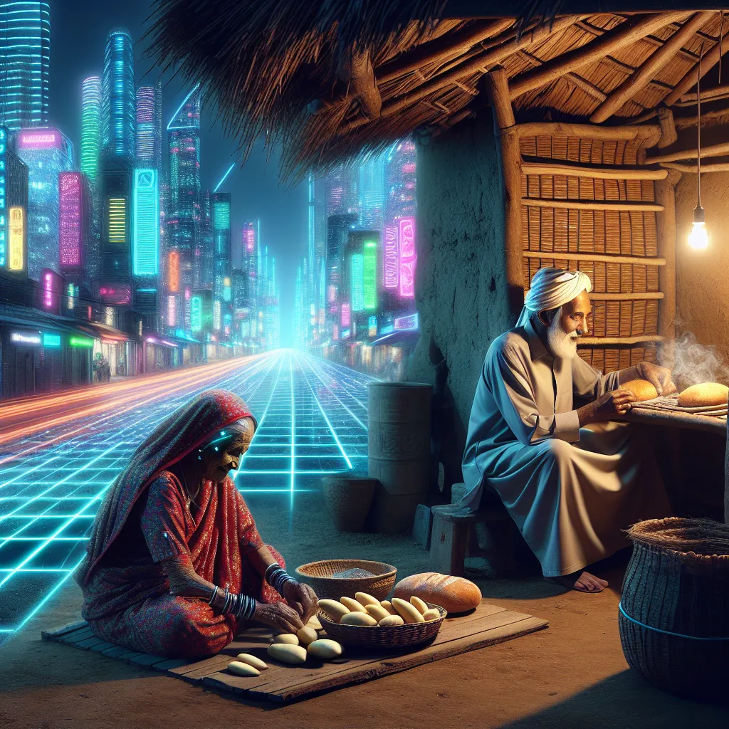 This style combines futuristic technology with a gritty, dystopian atmosphere, reminiscent of cyberpunk video games
