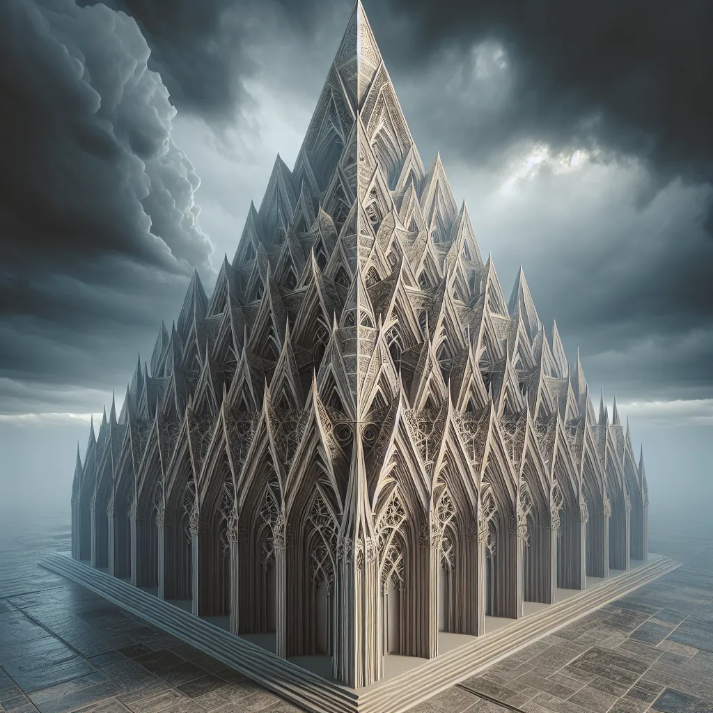 Creates 3D Image with dark, moody aesthetics, incorporating architectural elements from the Gothic era