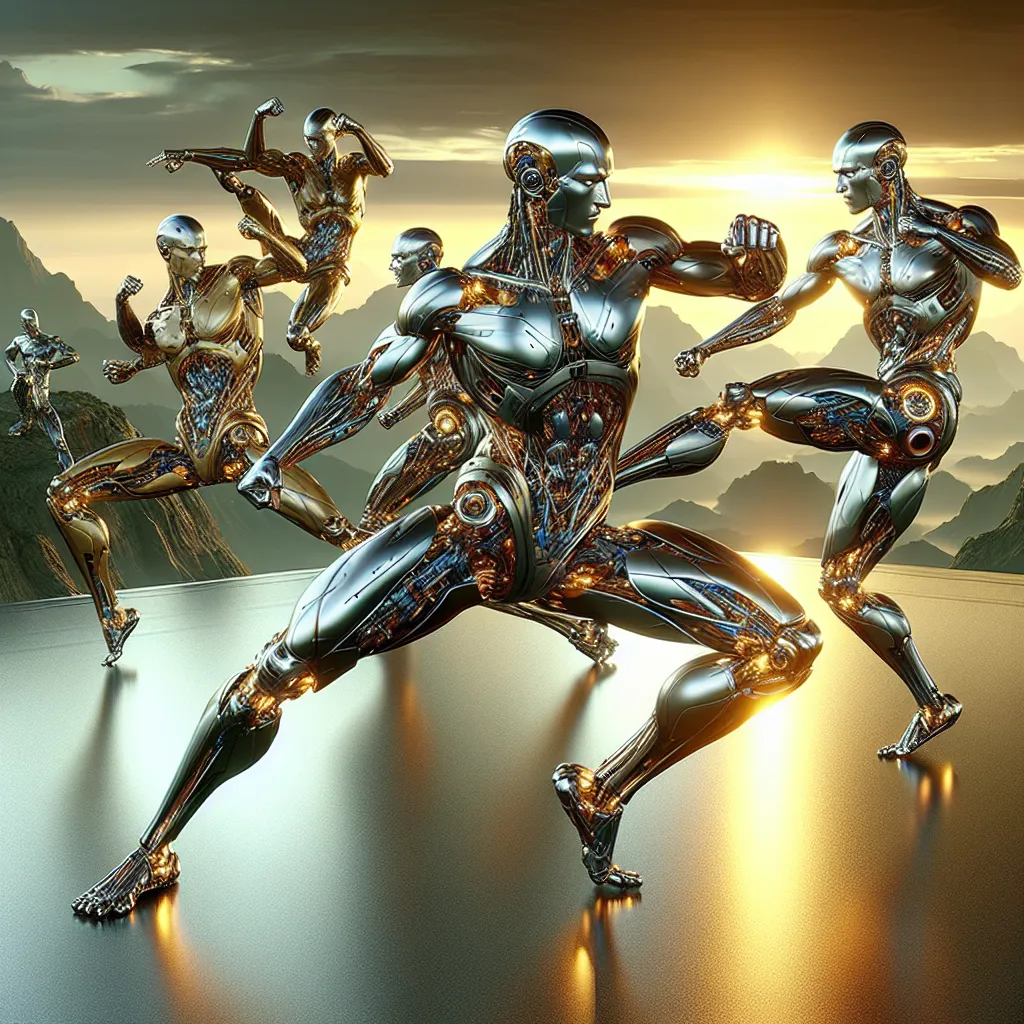 Cyborg's performing martial arts, HDR, masterpiece, ultra-detailed, ultra-realistic