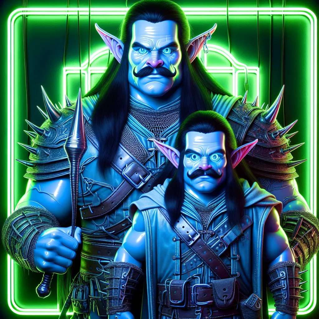 “Poncho and Lefty” is a conjoined twin. He is Dungeons and Dragons 3.5 edition half elf. He is a Ranger. His name is Poncho and Lefty. He is actually a conjoined twin. Poncho is the bigger of the two twins. He is big and lumbering and strong. Looks like Solomon Grundy. He doesn’t do much of the thinking and he has a squinty gaze and black shiny long elven hair. The other twin is “Lefty” is attached to Poncho via two tubes right above the left shoulder. He is just a half body. He is lean and about 35 percent the size of Poncho. He has no legs and has an abnormally large head but he is still somewhat handsome for a half elf. He has large crystal blue eyes. Poncho carries a Spiked Shield and a mace. He is wearing chain shirt armor under his Ranger cloak. Lefty is wearing an Ranger outfit with a fancy cape and a Robin Hood style hat.