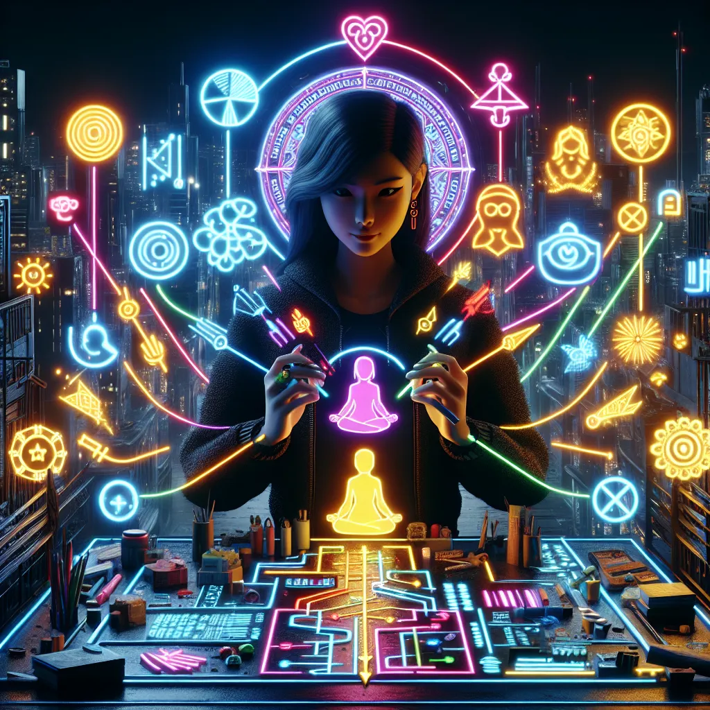 This style combines futuristic technology with a gritty, dystopian atmosphere, reminiscent of cyberpunk video games