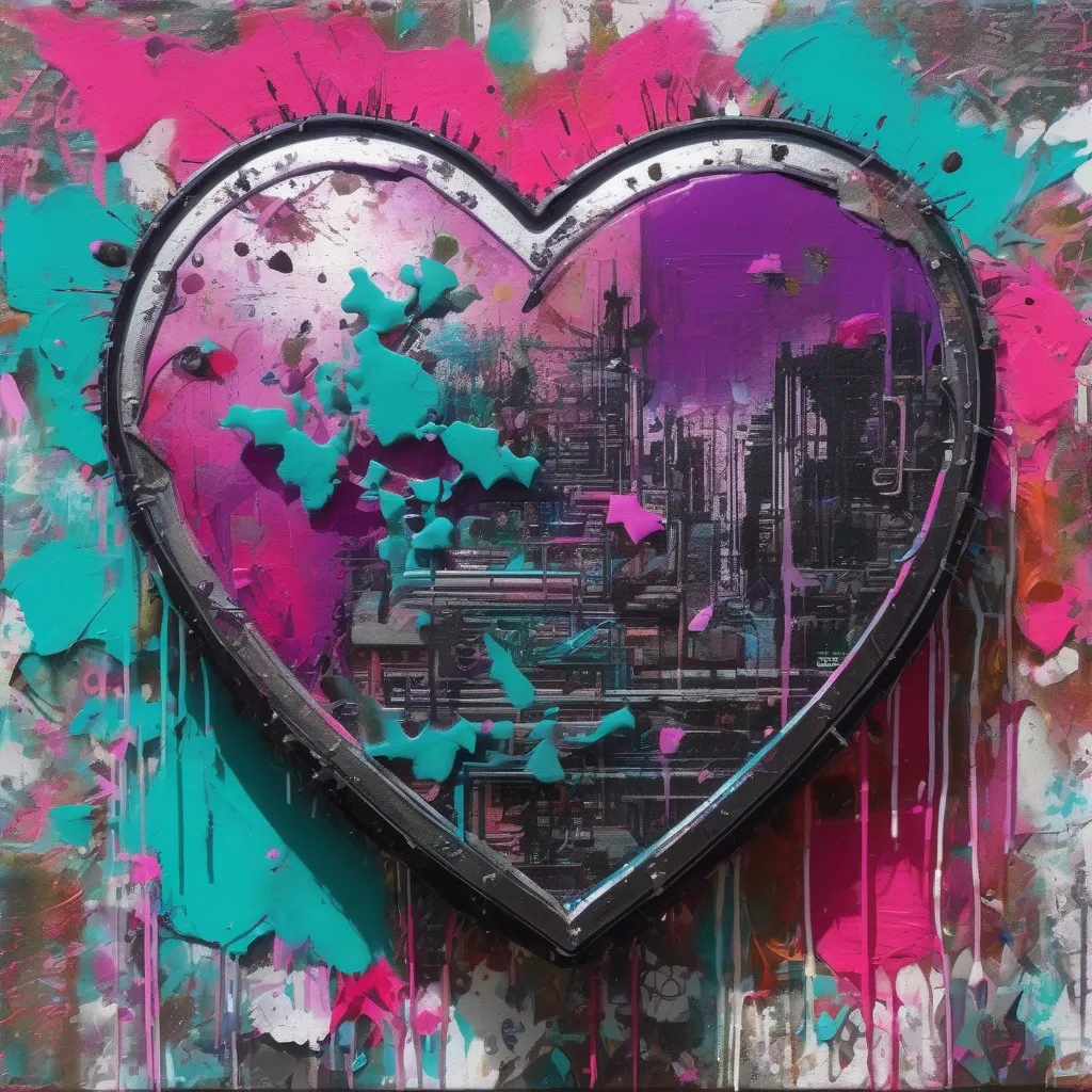 Create an image of an oversized heart, prominently featuring vibrant shades of teal, pink, purple, and white.