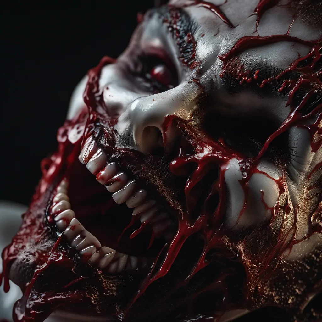 A nightmare’s grin with teeth of bone, A twisted face, where shadows moan. Blood drips like whispers from lips that tear, Eyes hollow wide, an empty stare. The skin is cracked, the flesh pulled tight, A wretched hunger born of night. Where screams are caught in a silent snare, She stalks the dark with wicked flair. Her smile is wide, a maw of death, She feeds on fear, steals your breath. In her gaze, you’re paralyzed, In her jaws, your fate is realized. Run if you dare, flee far away, She’ll haunt your dreams 'til break of day. Her laugh, it lingers, cold and deep— In her embrace, forever sleep.