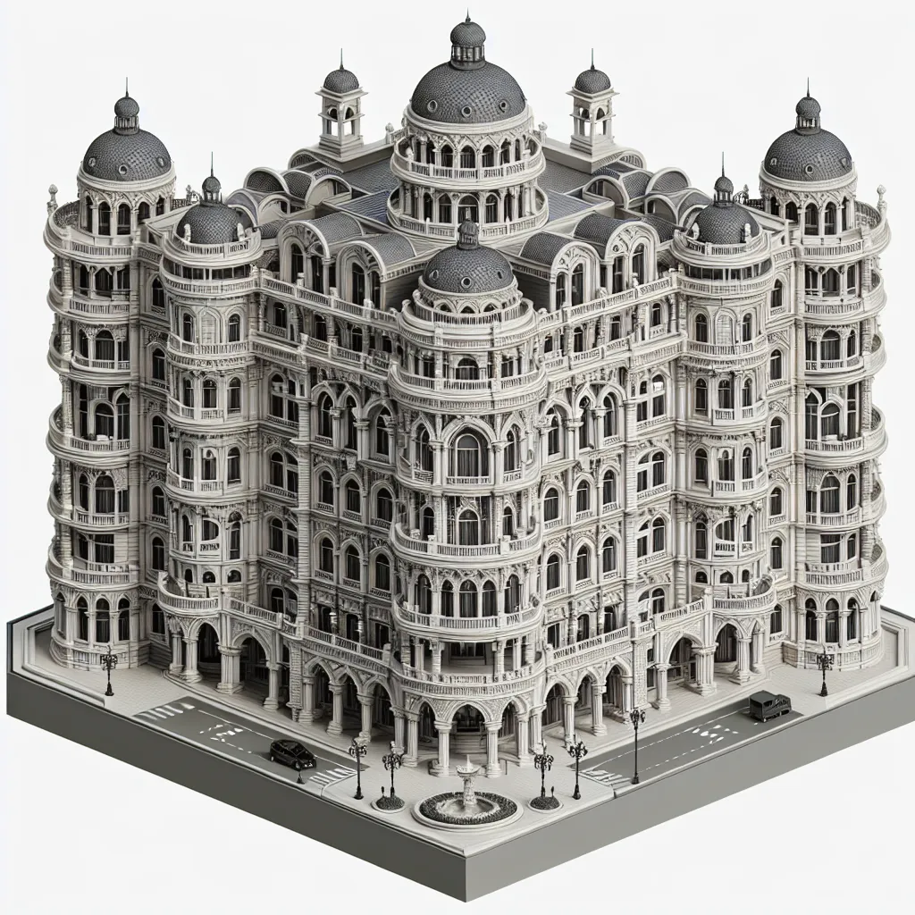 Creates 3D Image with dark, moody aesthetics, incorporating architectural elements from the Gothic era