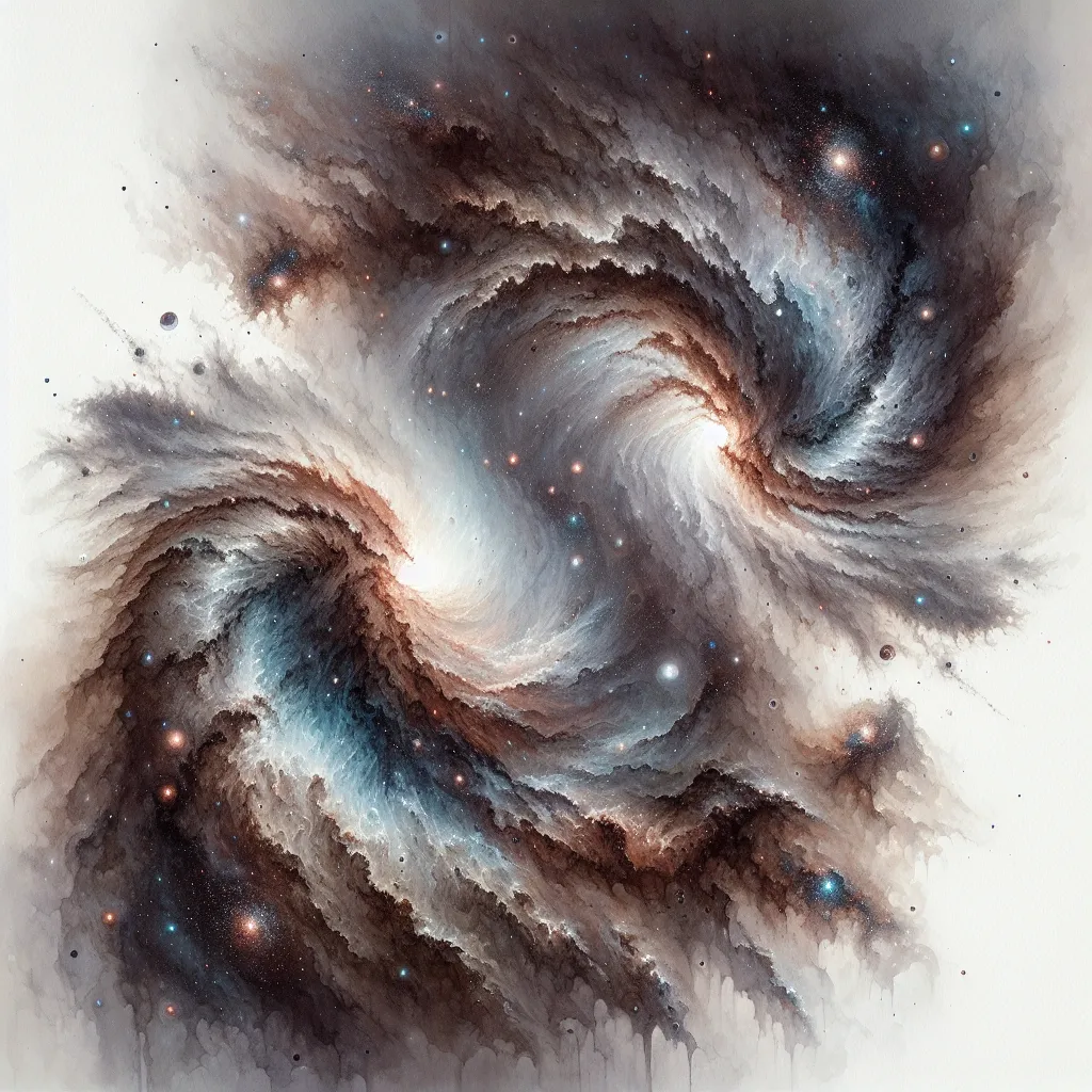 use brown and blue and gray and white tones and hues with high contrast and be highly saturated. utter deep space galaxies fill the entire image, stars from celestial galaxies fill entire page with a brilliant watercolors,