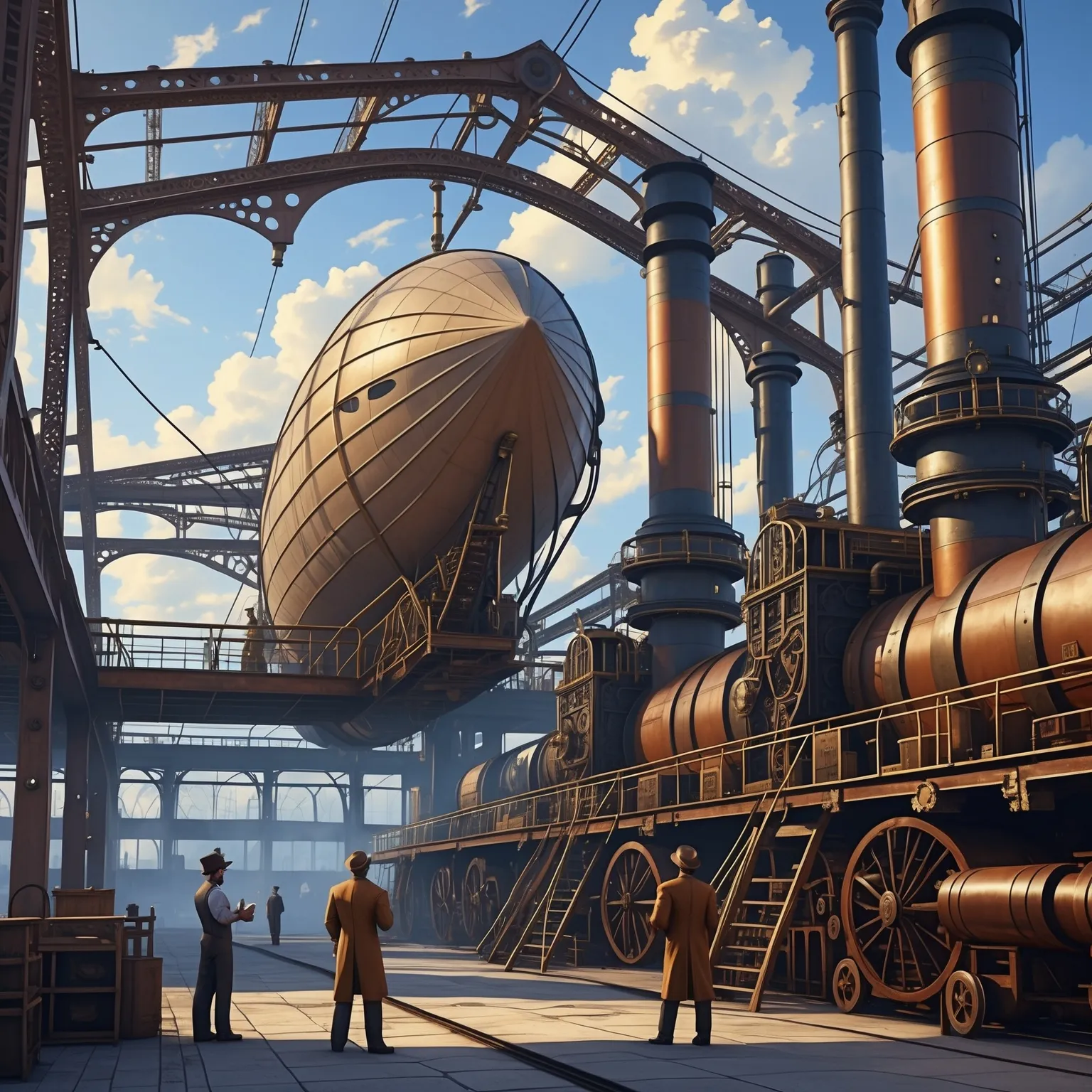 Combines elements of steampunk with fantasy, characterized by Victorian and mechanical aesthetics.