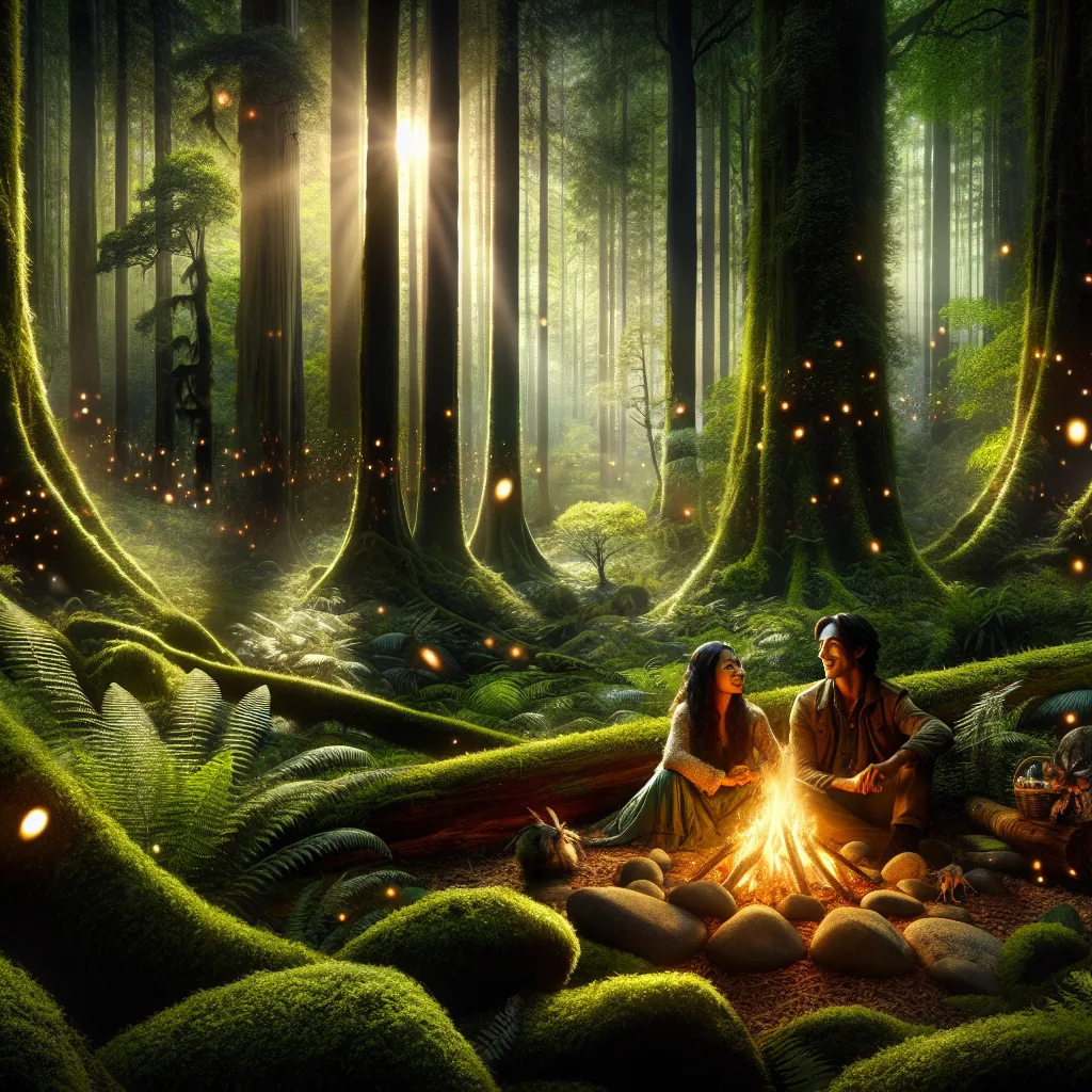 Creates a beautiful and captivating rendition objects / human in the forest
