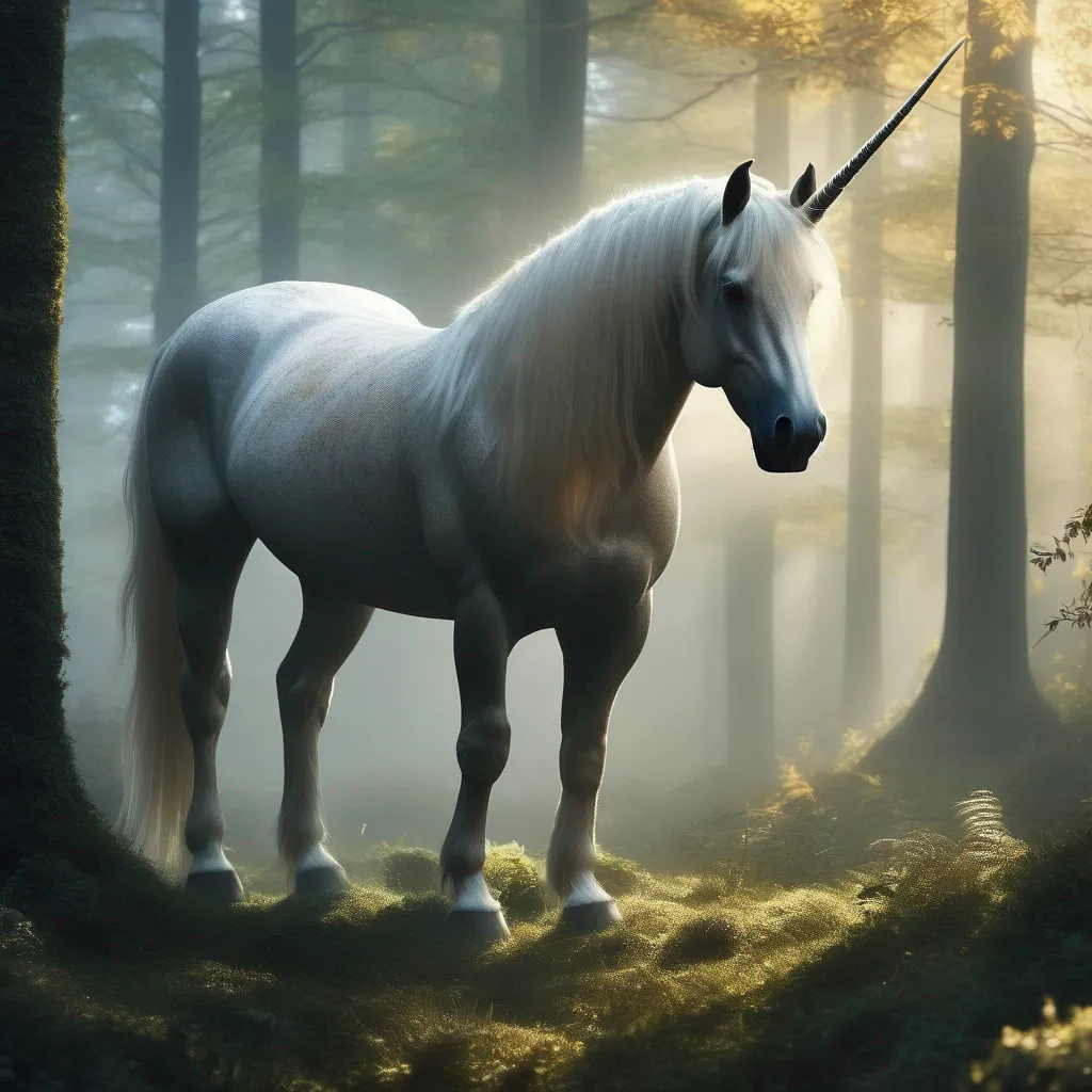 A glowing unicorn standing in a misty forest clearing.