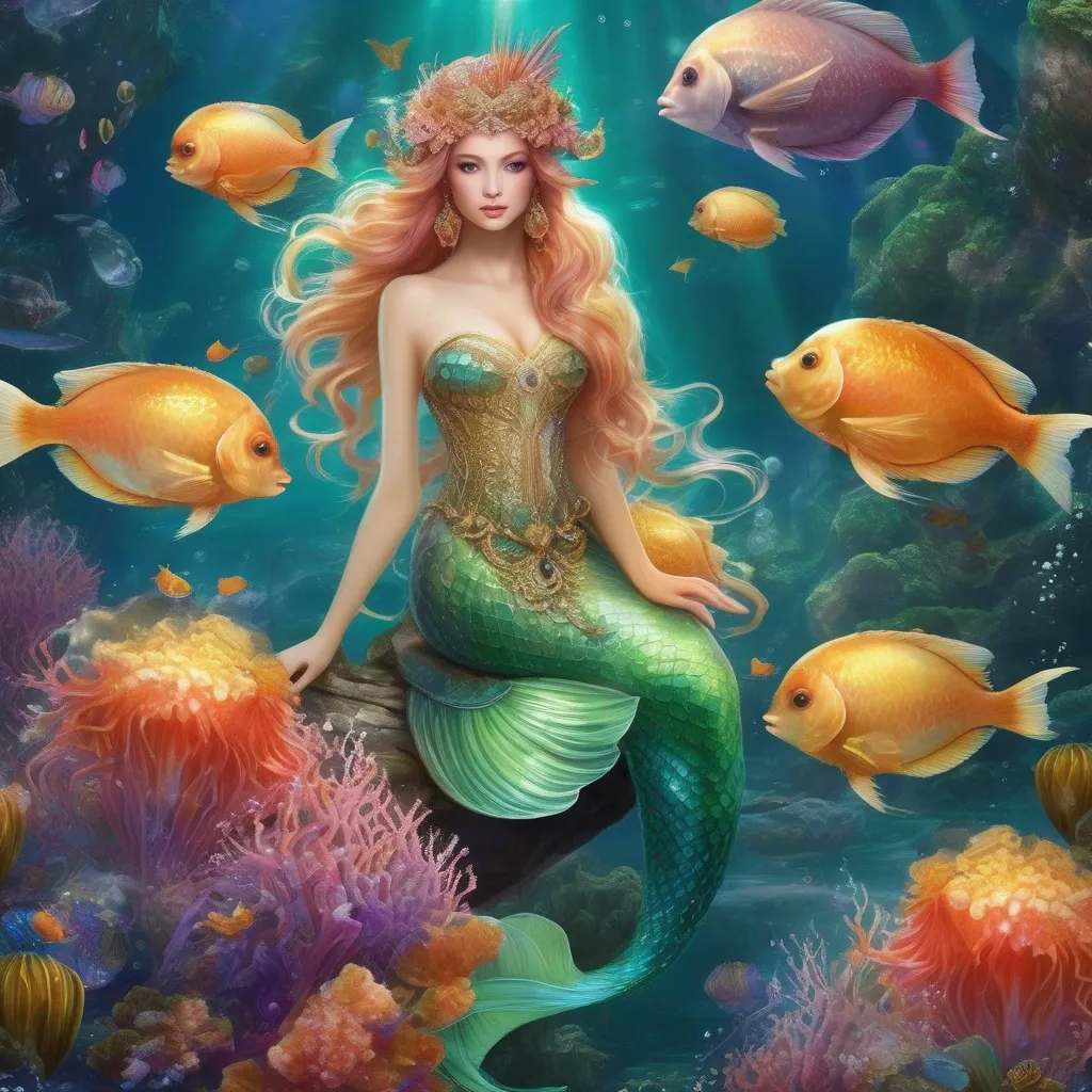 A BEAUTIFUL MERMAID WITH PRINCESS JELLYFISH