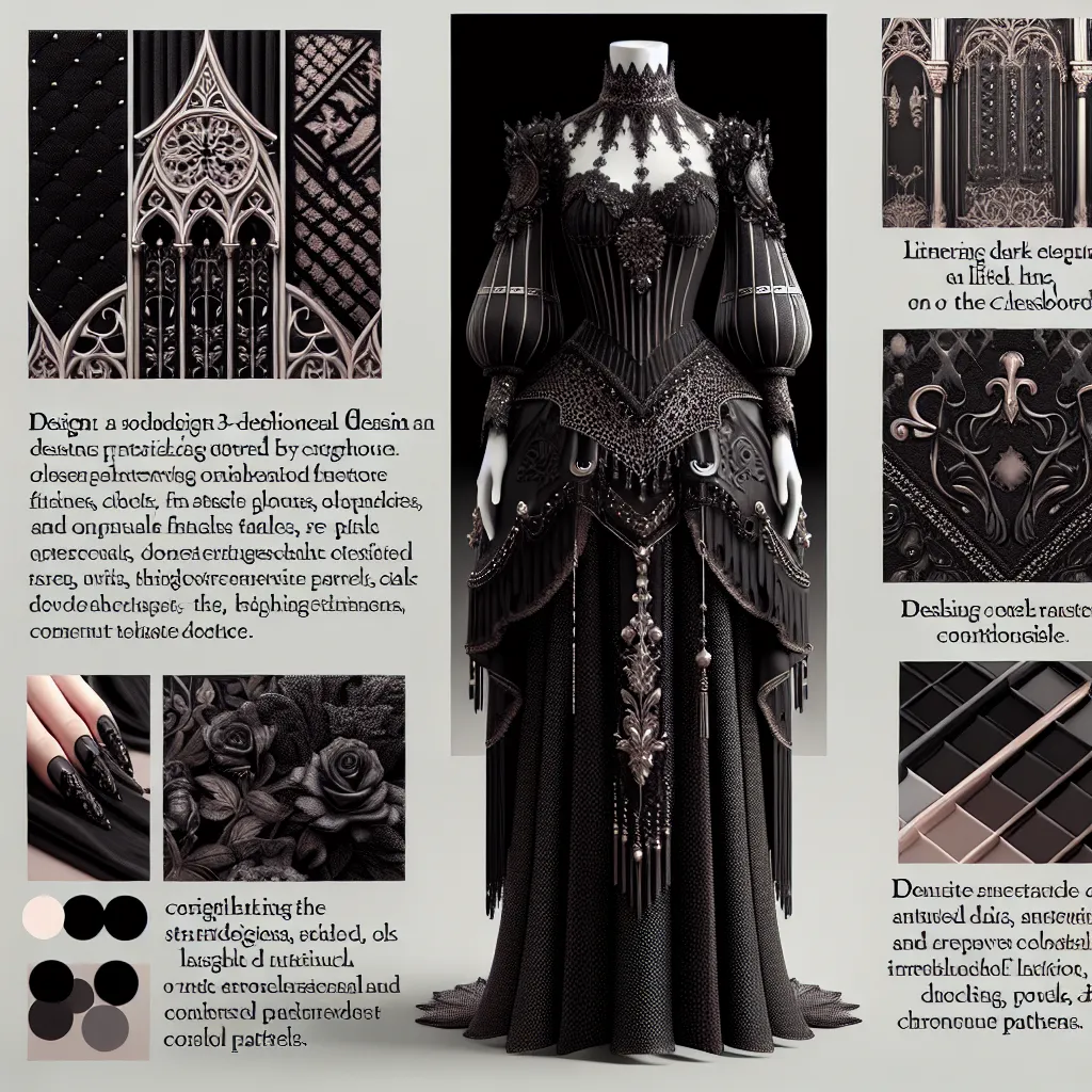 Creates 3D Image with dark, moody aesthetics, incorporating architectural elements from the Gothic era