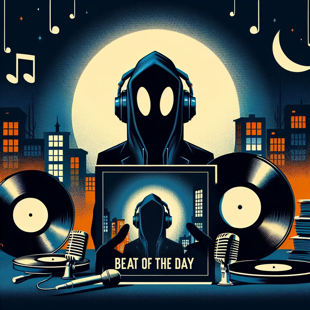 Design an album cover for the rap artist Dark Patter featuring the title "Beat of the Day."