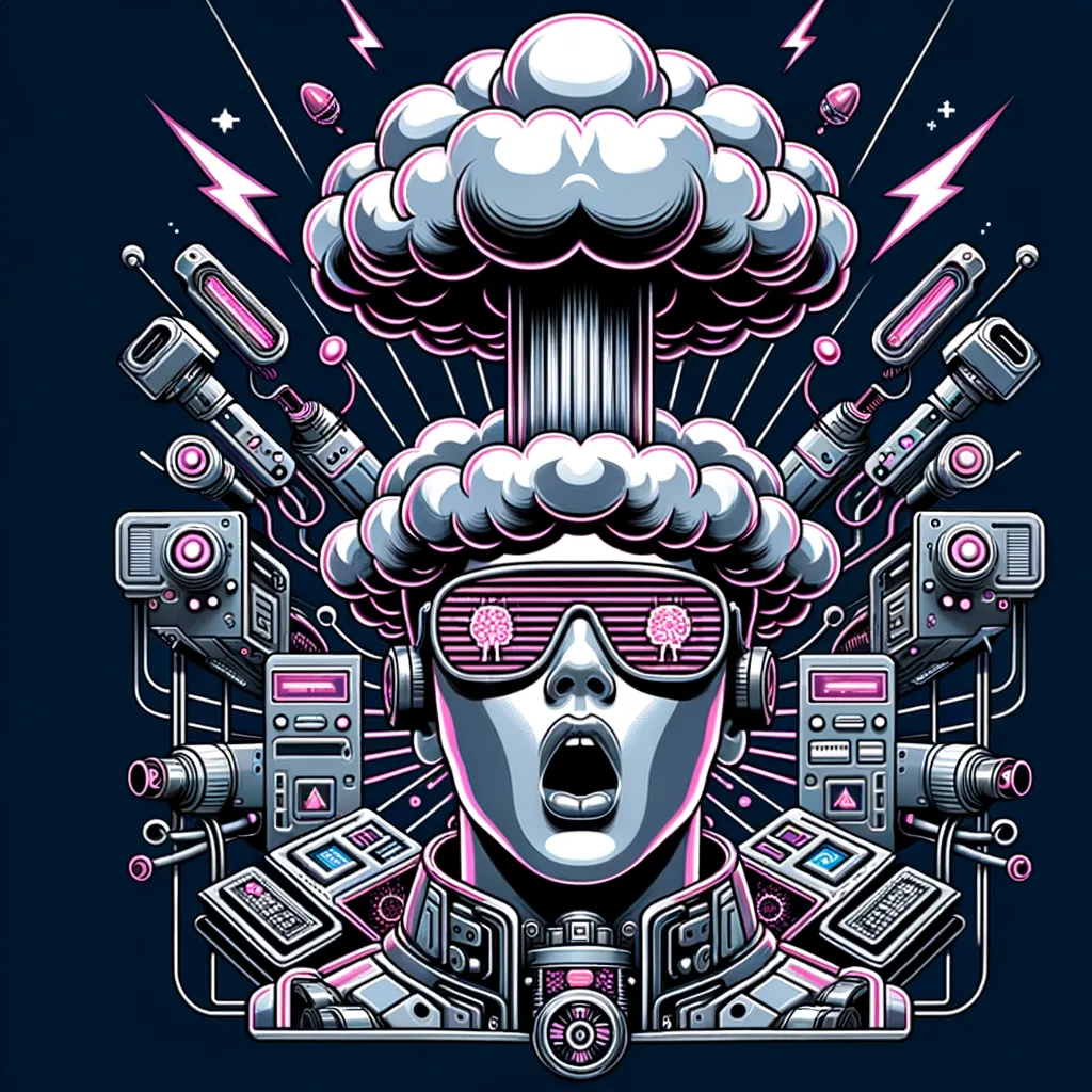 **Adam Bomb** - A Garbage Pail Kid with a mushroom cloud explosion coming out of his head. He's dressed in a classic 80s outfit, looking both shocked and mischievous as the atomic blast forms a comical, oversized shape above him.