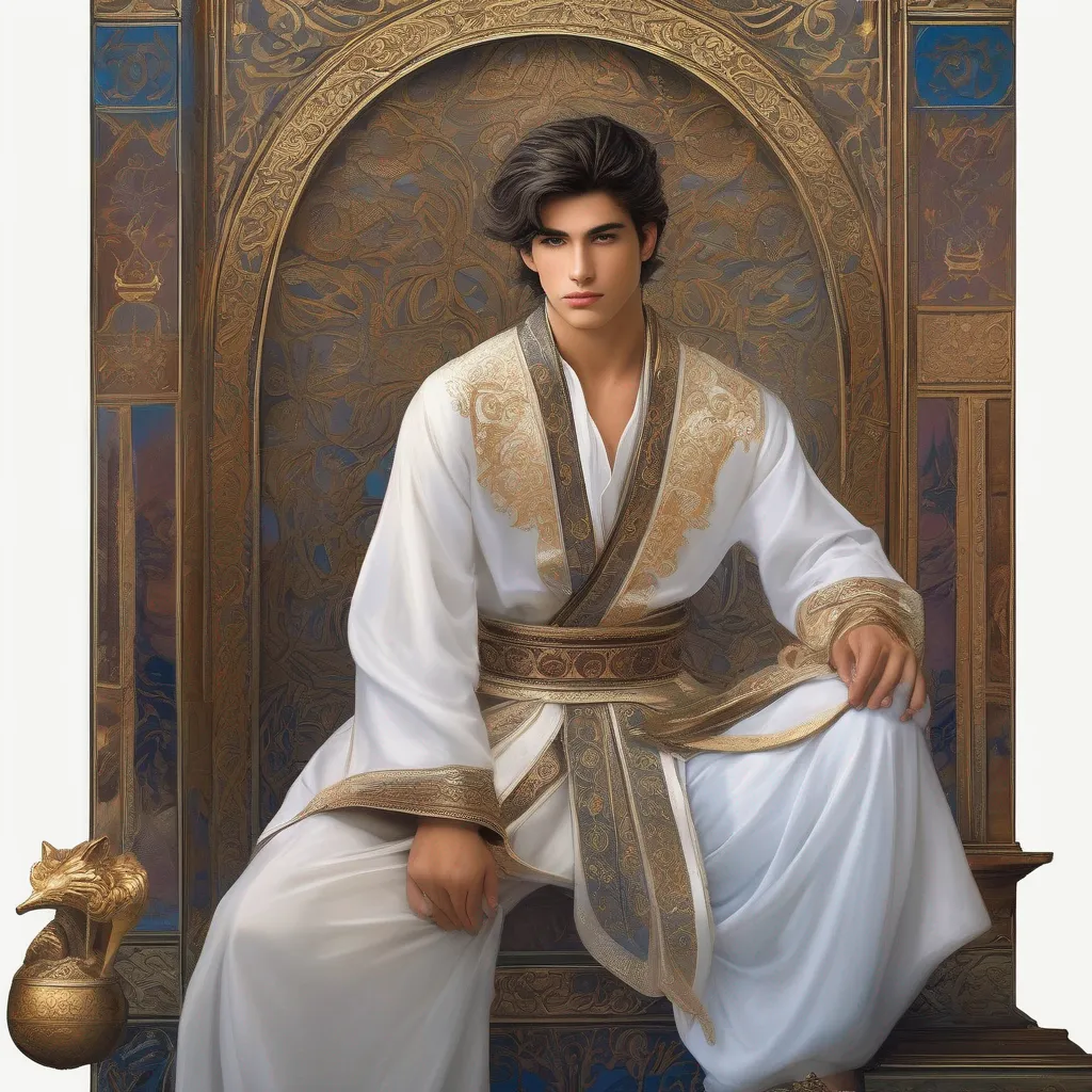 Create an image of a young barchested Young men with an athletic build, wearing traditional harem clothing such as loose pants and a decorative waist sash, with their chest exposed. The characters should exude confidence and charm, embodying the essence of young haremboys in a fantasy setting.