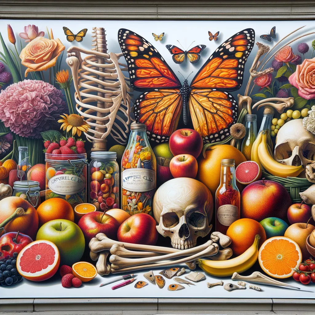 Create Image with compositions featuring inanimate objects such as food, flowers, or everyday items, rendered with meticulous attention to texture, light, and shadow