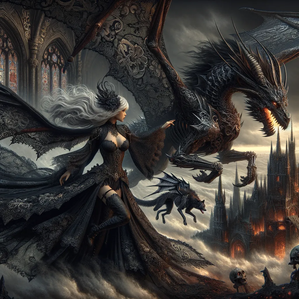 Creates 3D Image with dark, moody aesthetics, incorporating architectural elements from the Gothic era