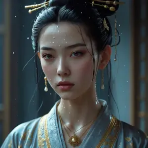 «A young beautiful Vietnamese woman in her mid 20s, long dark hai...»